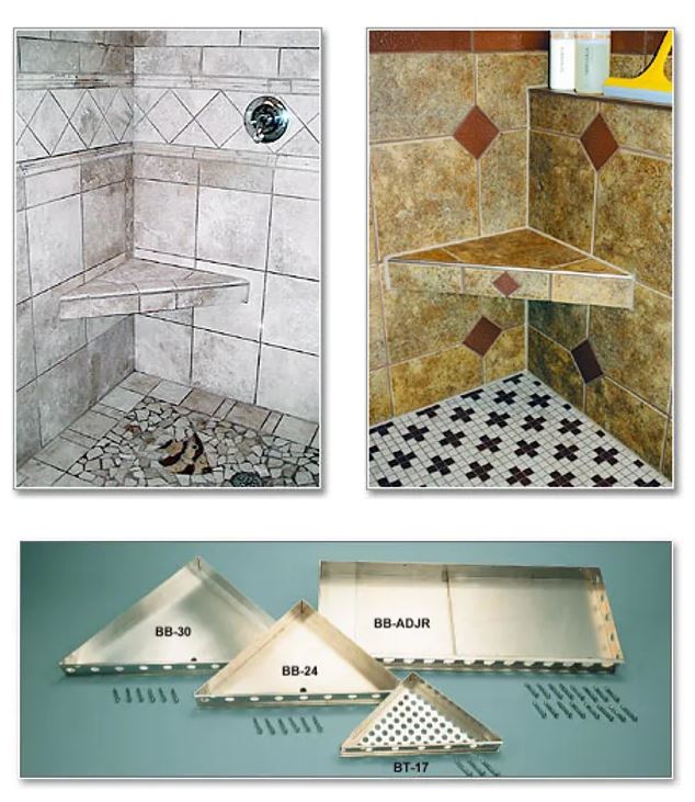 Install before or after finish tile is applied to vertical surfaces.