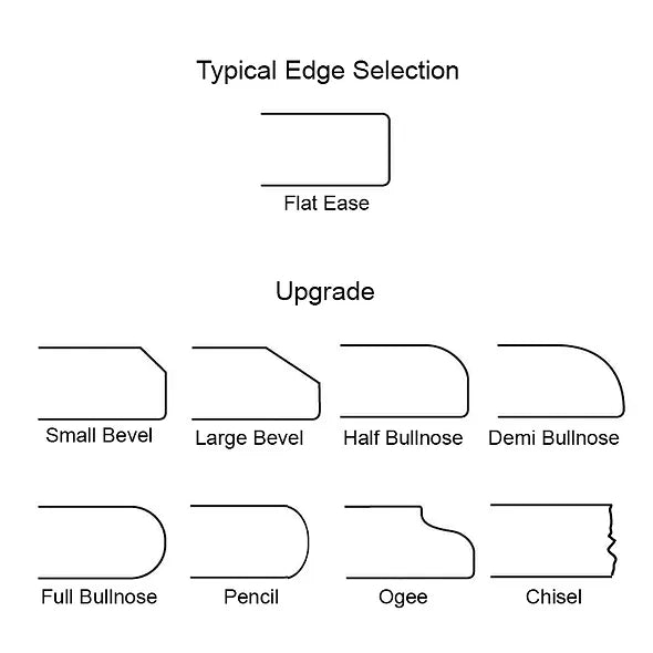 Let us know what kind of edge you'd like on your project! Flat ease is the most popular selection, but for an upcharge you can bring a unique spin to your project!