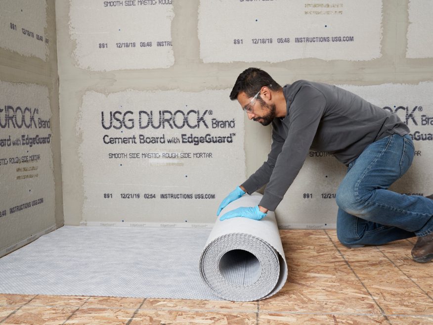 A waterproof underlayment membrane that helps suppress the transfer of lateral movement in a subfloor to preserve the integrity of the tile installation.
