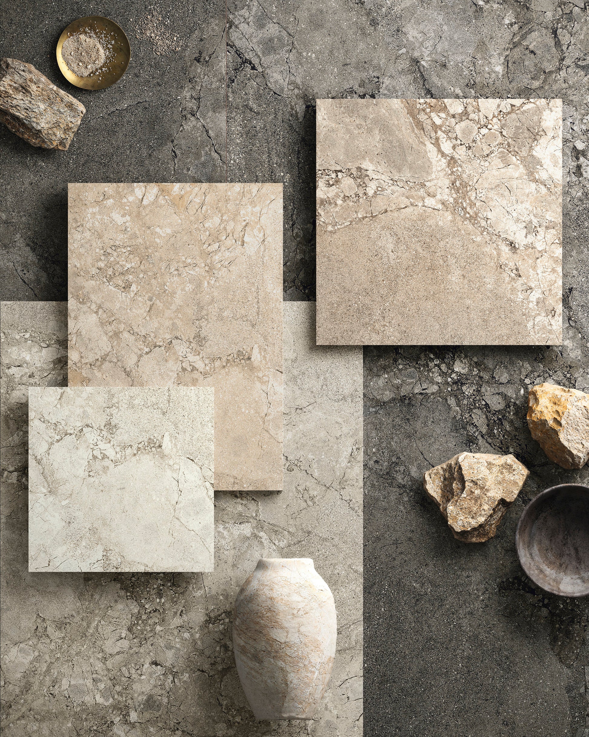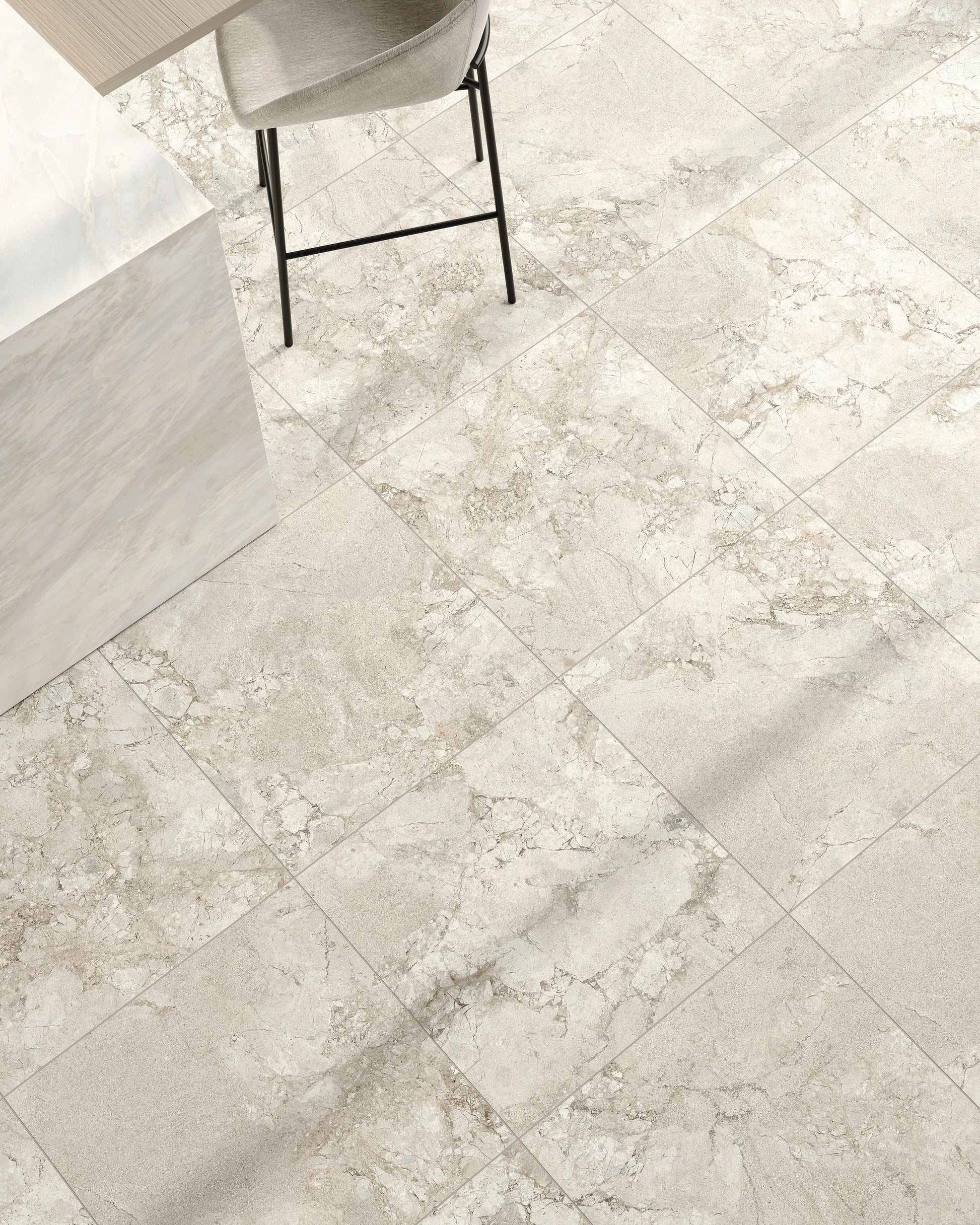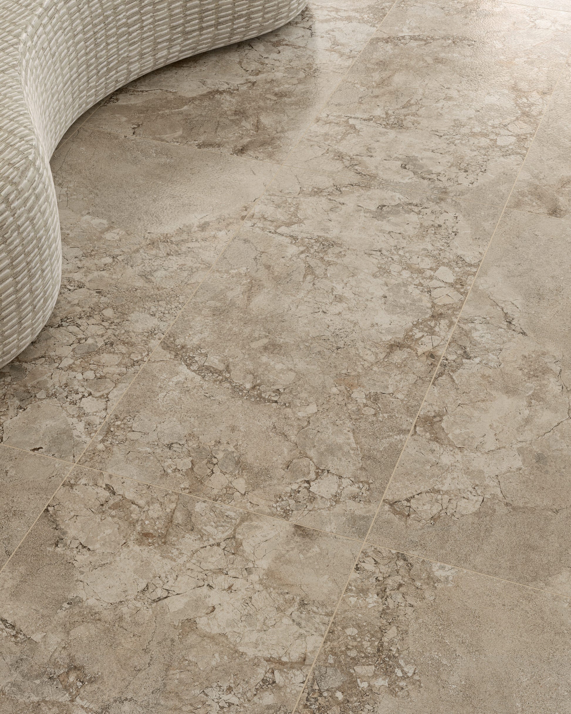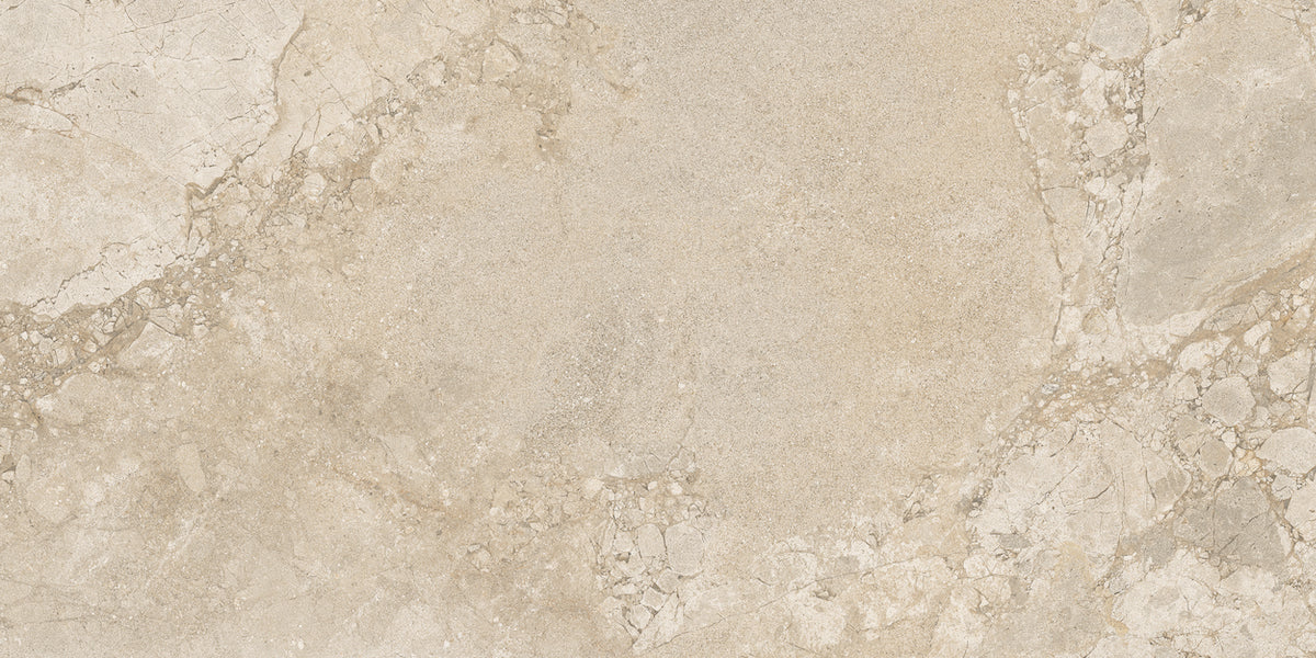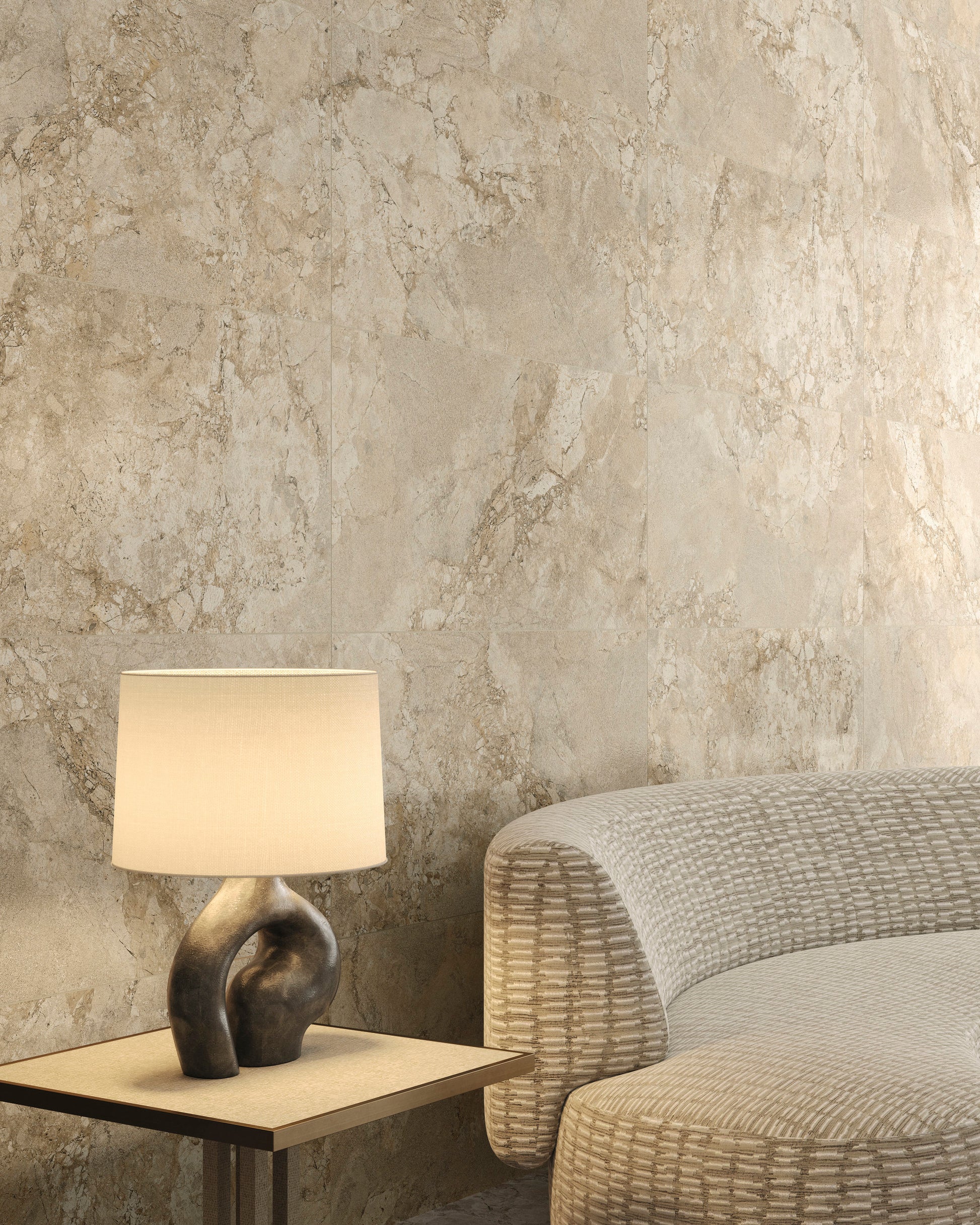 A modern interpretation of two exquisite stones, Lythos celebrates the harmonious encounter between the timeless elegance of French limestone and the robust character of Ambrosia stone. Mirroring its origins, Lythos showcases a distinctive appearance characterized by the elegant interweaving of veins, evoking the effect of a surface shaped by time, and subtle natural fractures that impart depth and movement to an authentic and sophisticated material, perfect for design projects with a contemporary soul.