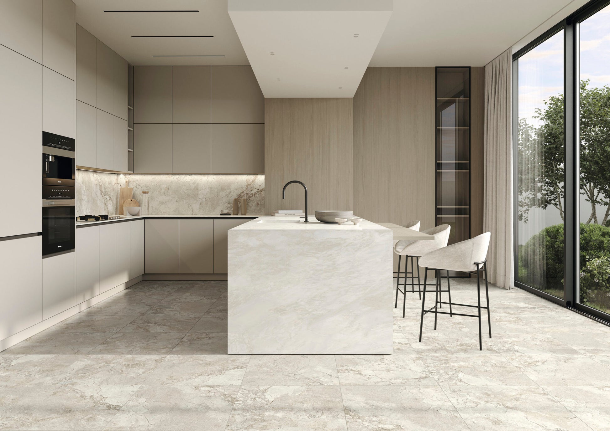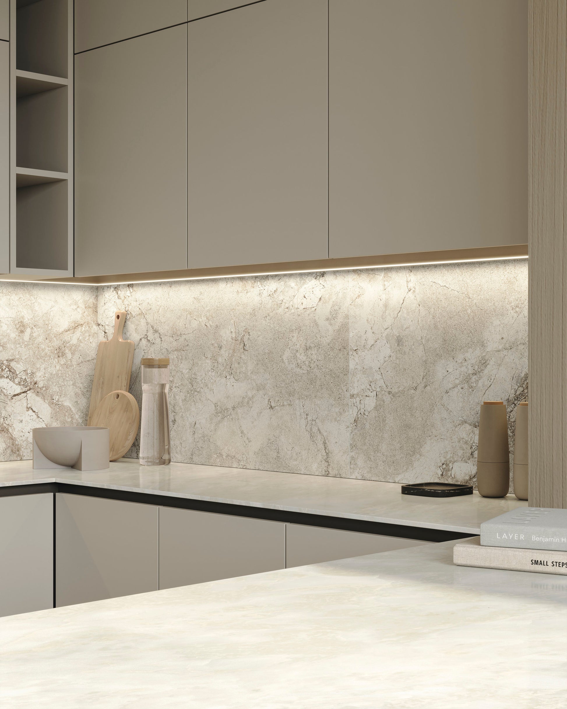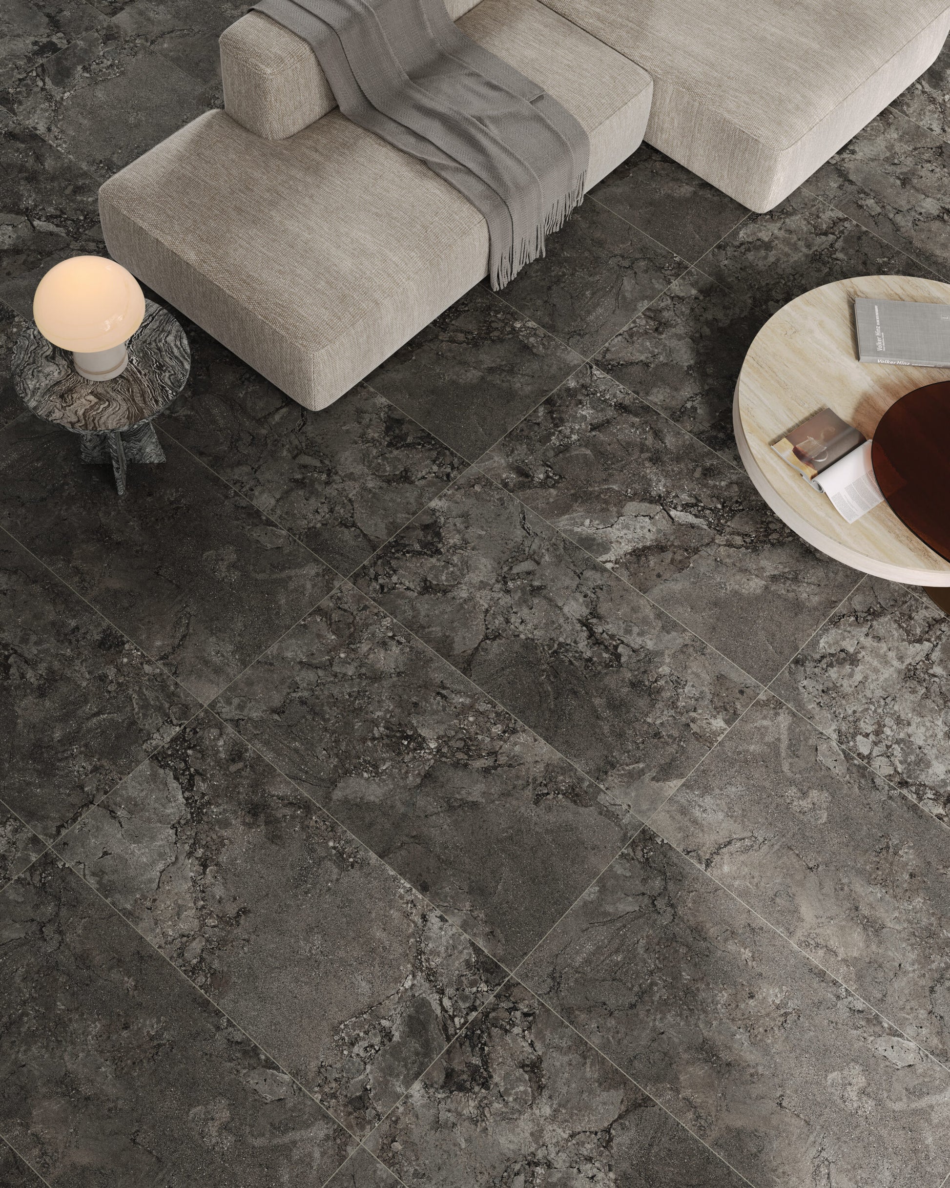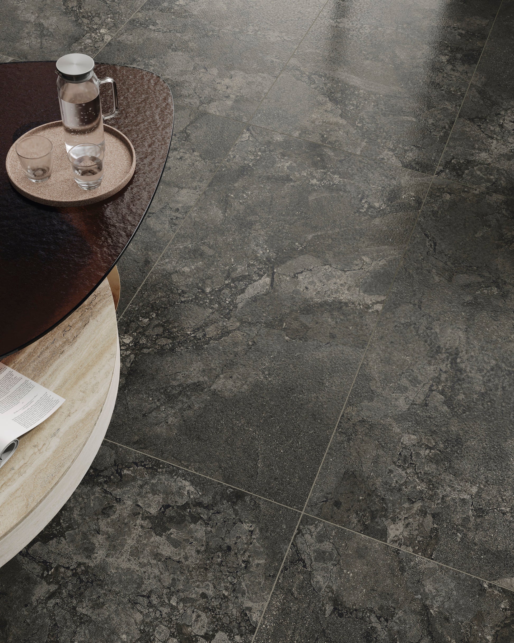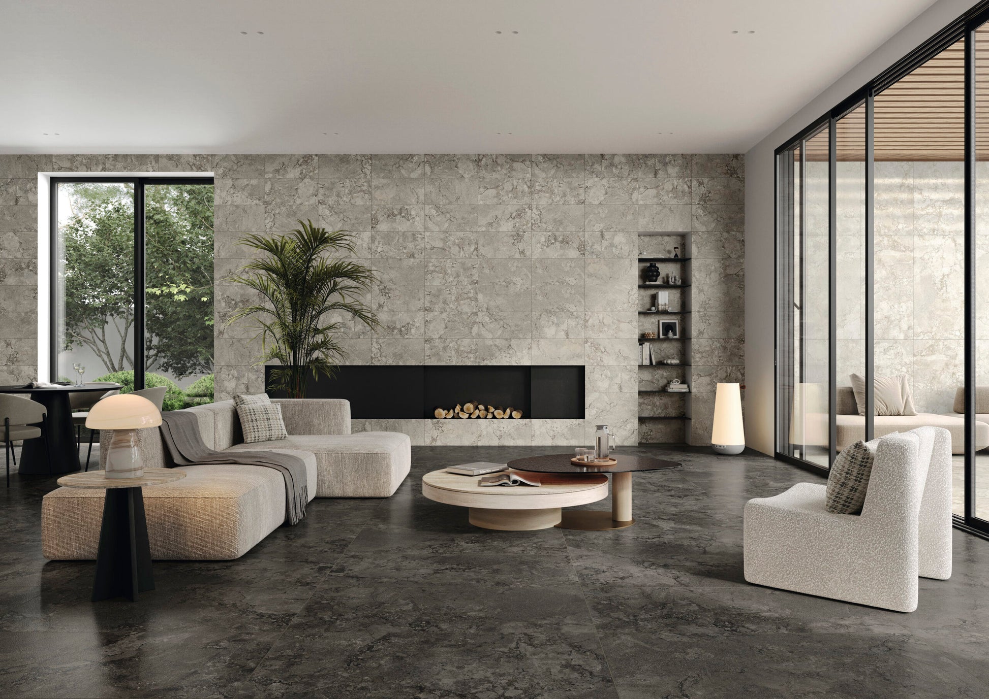A modern interpretation of two exquisite stones, Lythos celebrates the harmonious encounter between the timeless elegance of French limestone and the robust character of Ambrosia stone. Mirroring its origins, Lythos showcases a distinctive appearance characterized by the elegant interweaving of veins, evoking the effect of a surface shaped by time, and subtle natural fractures that impart depth and movement to an authentic and sophisticated material, perfect for design projects with a contemporary soul.